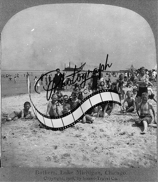 Bathers,Lake Michigan,Chicago,Illinois,IL,Swimming,Ship,Children,Beach,c1908