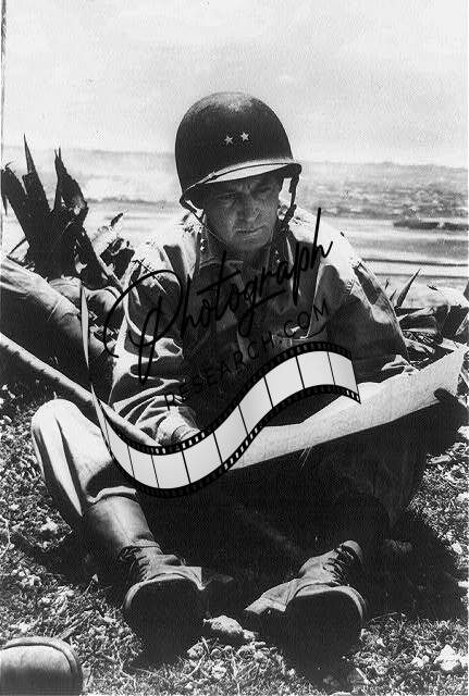 Major General Lemuel C. Shepherd,shore,studying map of Okinawa,June 28,1945