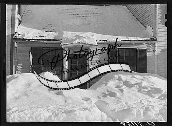 House in Woodstock,Vermont with drifts piled in front of windows,door