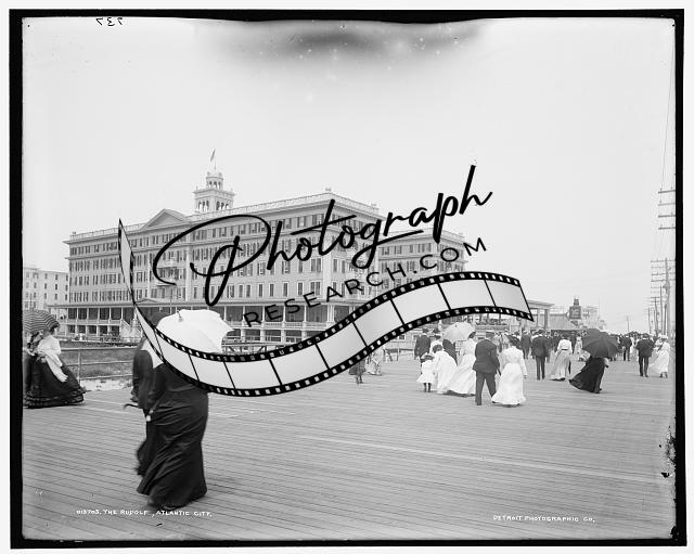 Hotel Rudolph,boardwalks,crowds,buildings,piers,Atlantic City,New Jersey,NJ,1900