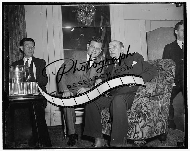 Title: Before the opening gong. Washington, D.C. March 8. Big three of the Labor Nonpartisan League pictured just before the gong sounded to open the convention of the League in Washington today. About 600 labor leaders of all sections of the country were here for the initial session. In the picture, left to right: John L. Lewis, United Mine President and Chairman of Executive Committee of the League; Sidney Hillman, Secretary Treasurer ; and Maj. George L. Berry, President of the League, 3/8/1937