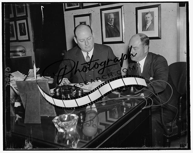 Title: Before the opening gong. Washington, D.C., March 8. Big three of the Labor Non-partisan League pictured just before the gong sounded to open the Convention of the League in Washington today. About 600 labor leaders of all sections of the country were here for the initial session. In the picture, left to right: John L. Lewis, United Mine President and Chairman of Executive Committee of the League; Sidney Hillman, Secretary, Treasury; and Maj. George L. Berry, President of the League, 3/8/1937