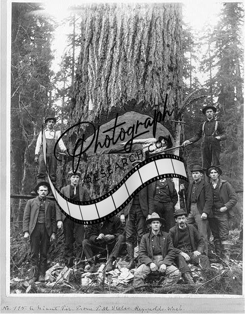 Giant Fir tree,lumberjacks,lying in cut in tree,T.M. Kelso,Reynolds,Washington