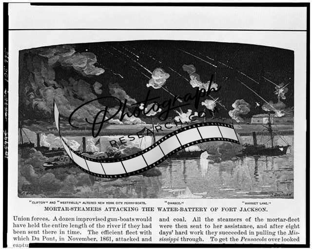 Open,Mississippi,capture,New Orleans,Mortar-steamers attack,Fort Jackson,LA,c894