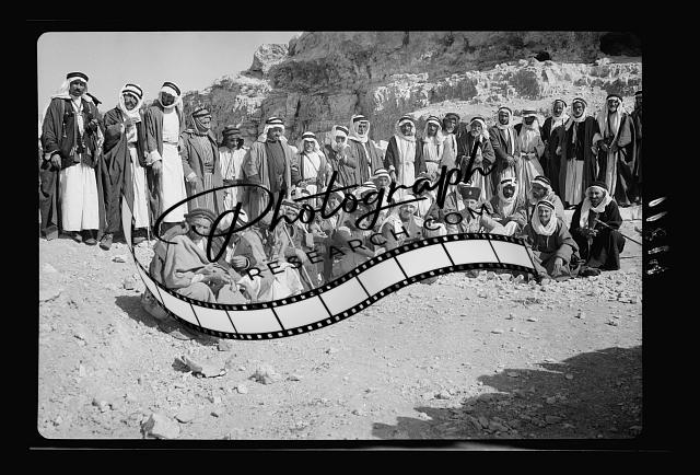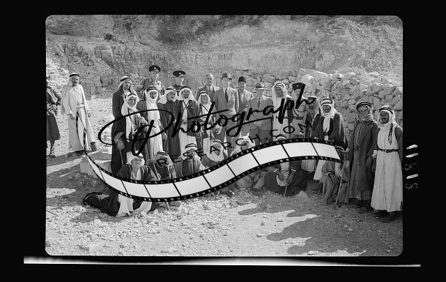 Title: Opening of augmented water source in Jaamri Country at Ain Hamda, S.E. of Bethlehem. Group at spring, left to right, Fias Bey ed Driezy, Mr. Kyles, Mr. Sommerville, Mr. McGeagh, engineer, and Mr. Faraj., etc.