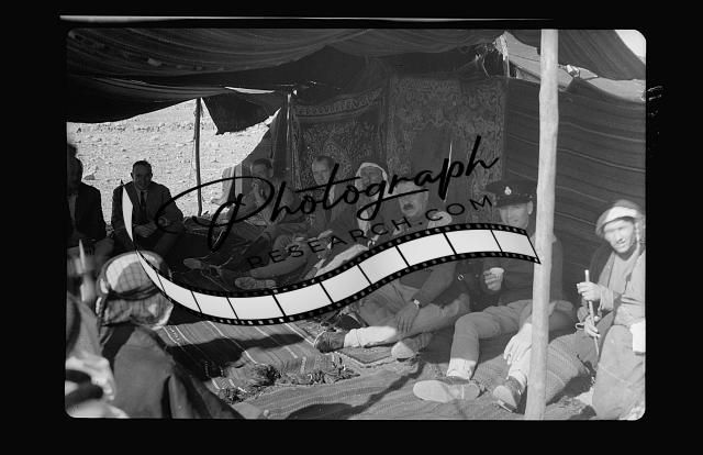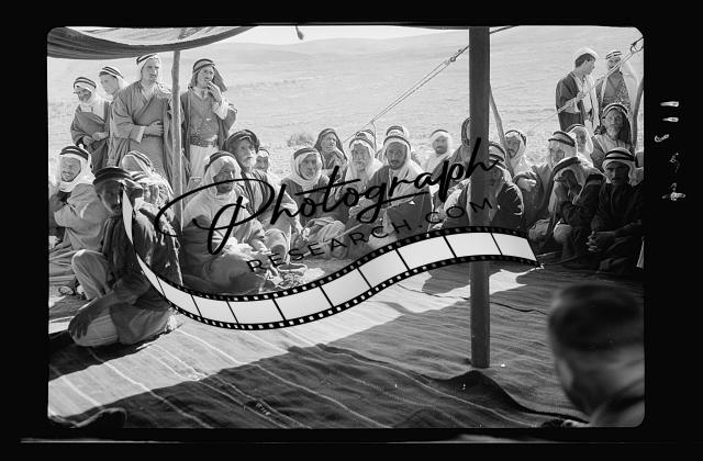 Title: Opening of augmented water source in Jaamri Country at Ain Hamda, S.E. of Bethlehem. Mr. & McGeagh hand to Sheik, key to Ain Hamda