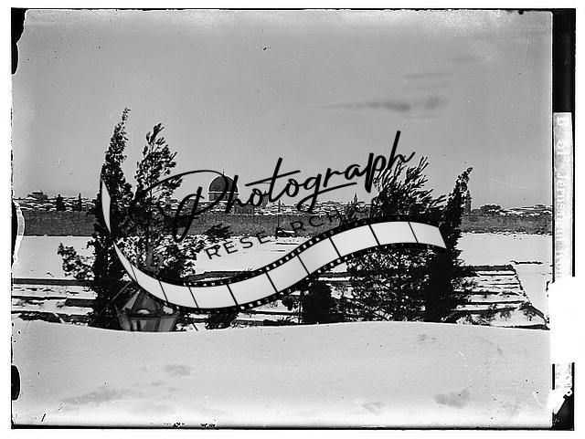 Jerusalem during a snowy winter,Jerusalem from Olivet in snow,Middle East,1920