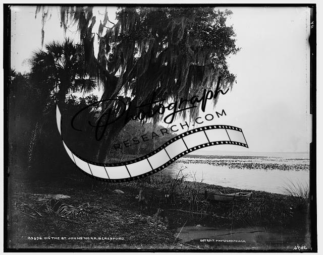 Saint John's River,trees,canoes,boats,water bodies,Beresford,Florida,FL,1880