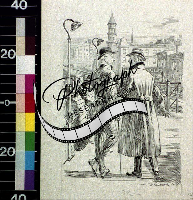 Two men engaged in conversation,c1916,Cartoon,John Conacher