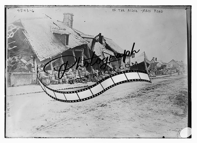 In the Aisne,France,Main Road,damaged buildings,rubble,Bain News Service