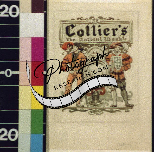 Coat of Arms flanked by men,medieval dress,Collier's,Walter Appleton Clark,c1900