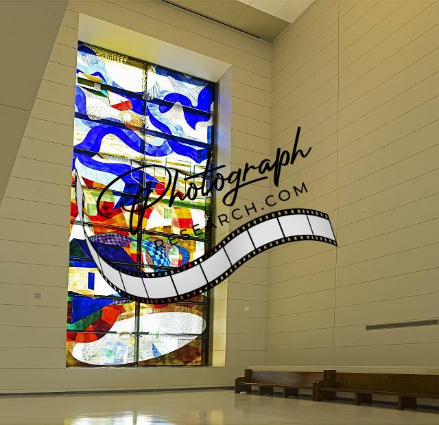 Title: Untitled art glass window at entrance to atrium, U.S. Courthouse, Orlando, Florida