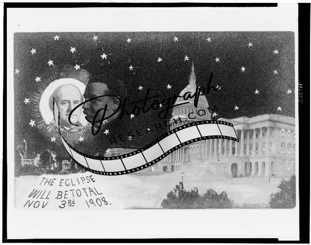 U.S. Capitol at Night,Stars,William H Taft as Moon,Eclipse William J Bryan,Sun