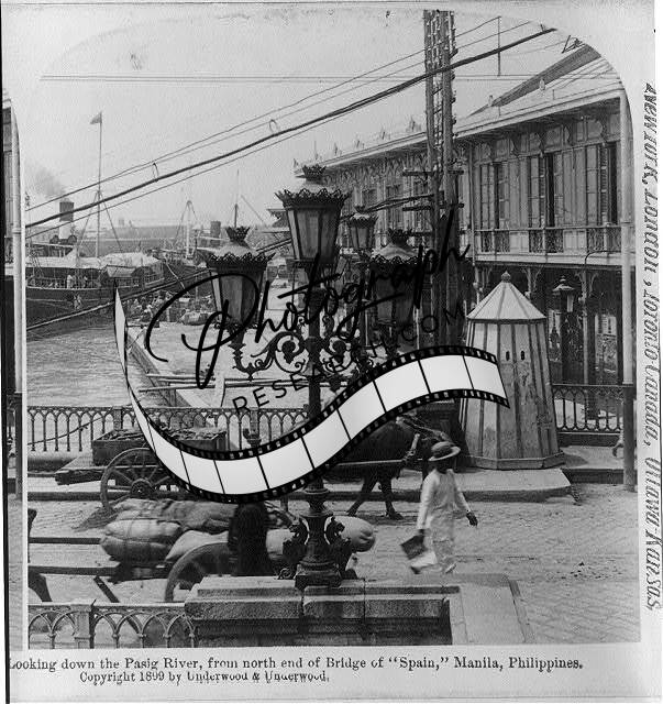 Looking Down Pasig River,Bridge of Spain,Manila,Philippines,c1899,Street Lamp