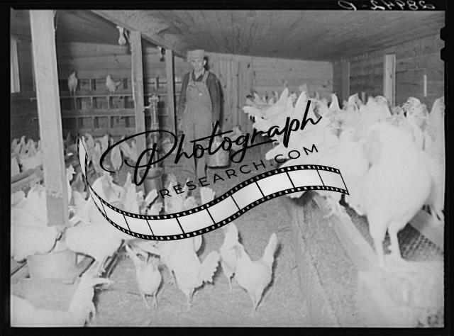 Title: There are 1800 chickens and 2000 pullets at the Bois d'Arc cooperative. Osage Farms, Missouri