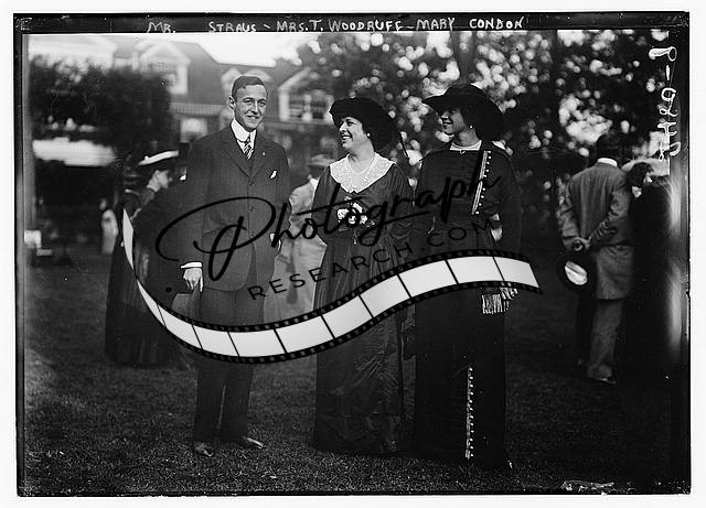Summary: Photo shows Oscar Straus (1850-1926), Bull Moose Party candidate for governor of New York in 1912; shaking hands with Mrs. B. Cochran while Eleanor B. Roosevelt looks on. Event took place at the country home of politician William Bourke Cockran (1854-1923), Port Washington, Long Island, New York State. (Source: Flickr Commons project, 2008 and 2010, and New York Times, Sept. 29, 1912).
