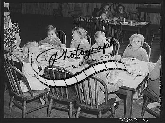Title: Children of migratory workers eating lunch in twenty-four hour nursery at Osceola migratory labor camp built by FSA (Farm Security Administration). Belle Glade, Florida