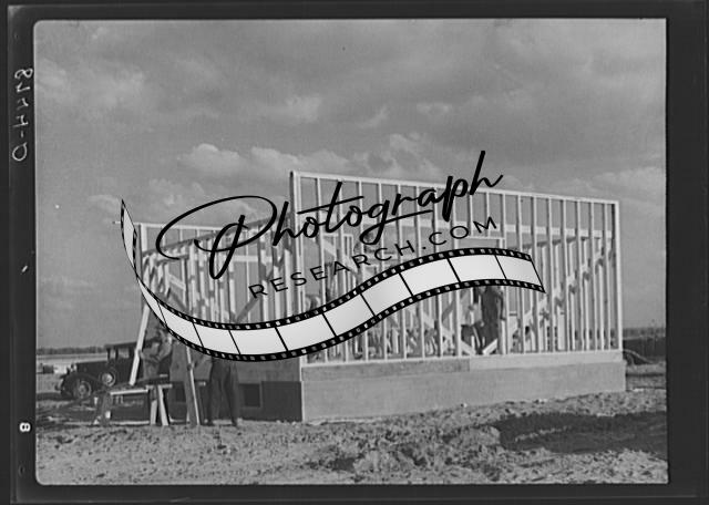 Building new house on northeast Kansas development project,KS,October 1938,FSA
