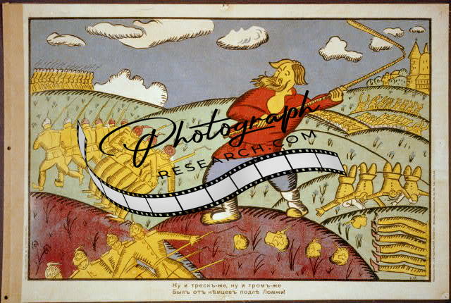 Nui i tresk-zhe,c1915,Russian Revolution,Russian Man w/ Scythe Mowing,Soldiers