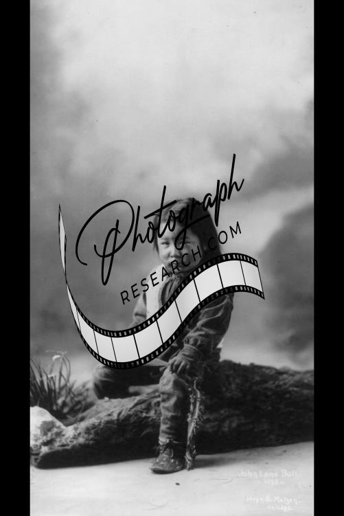 John Lone Bull,Sioux Indian Child,c1900,seated on log