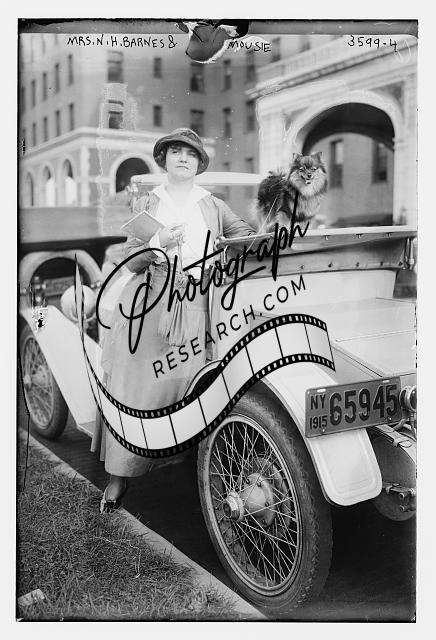 Mrs. N.H. Barnes & 'Mousie' - dog,woman,pet,automobile,Bain News Service