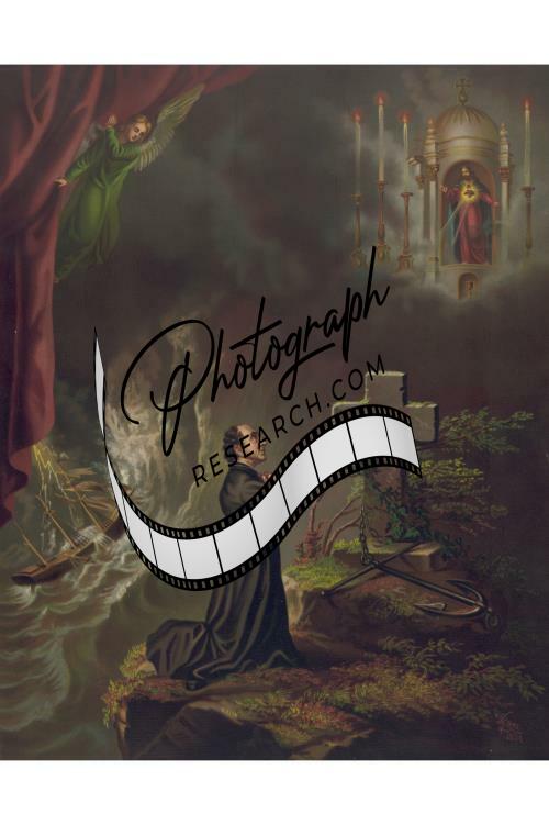 Religious Scene,Religion,Jesus Christ,Cross,Ship,Man,Angel,c1874,Praying