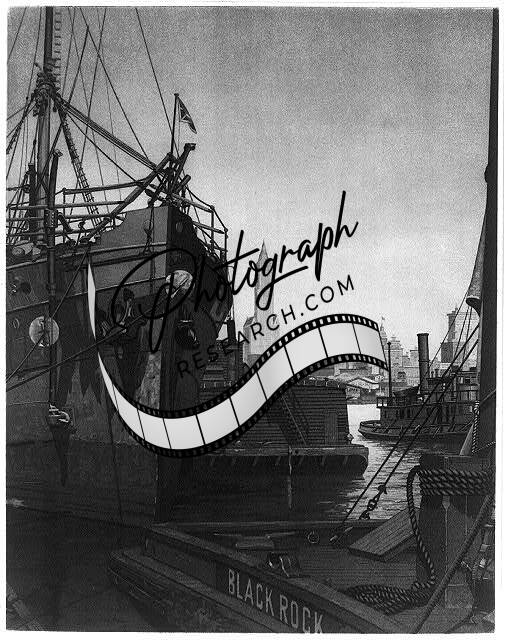 Early morning,North River,1921,John Taylor Arms,Boats,Cityscape,Skyscrapers