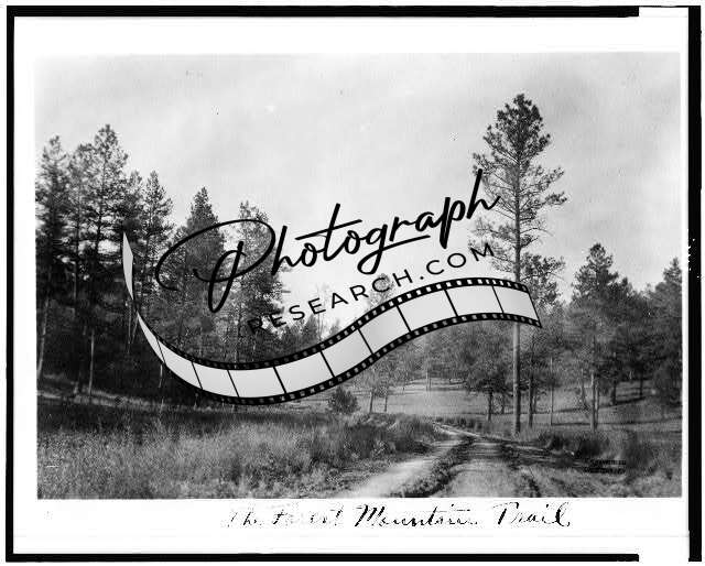 Forest mountain trail,pine trees,roads,paths,wilderness,fields,grasses,c1930
