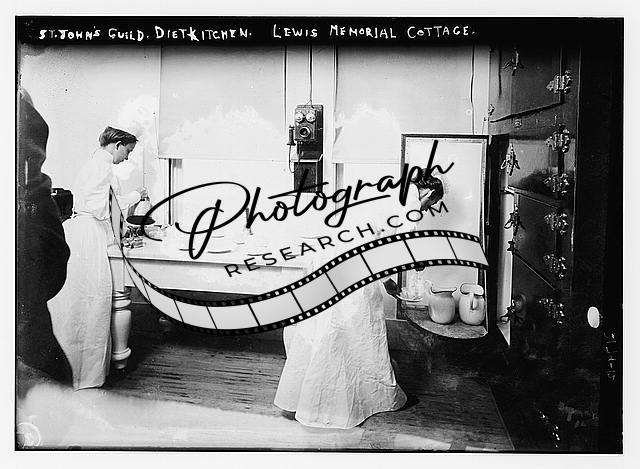 St. John's Guild. Diet kitchen. Lewis Memorial Cottage,women working,Bain news