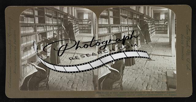 Monks at their studies in the library of old S. Francisco Convent, Lima, Peru