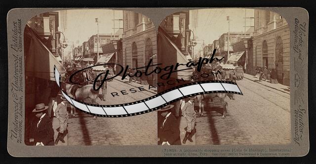 A fashionable shopping street (Calle de Huallago), International bank at right,