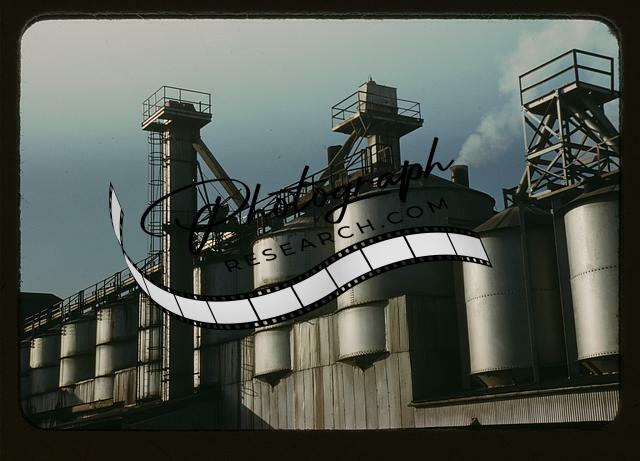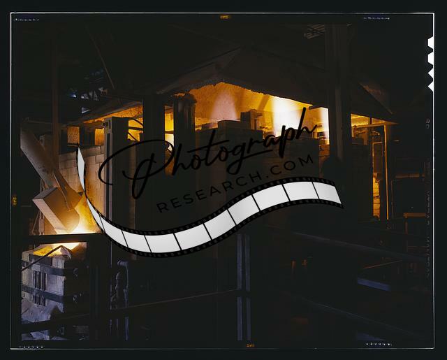 Title: Owens-Corning Fiberglas Corporation, Toledo, Ohio. Side view of a glass furnace melting the carefully compounded batch required for the production of Fiberglas thermal insulation being installed in the hulls of naval vessels now under construction