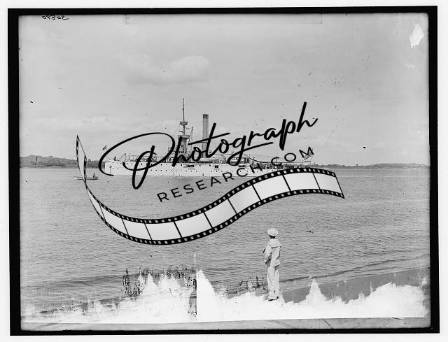 Battleship,boats,river,water vessels,naval warfare,Detroit Publishing Co,1890
