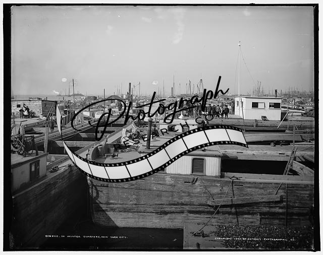 Canal boats,winter quarters,ships,New York,NY,Detroit Publishing Company,1900