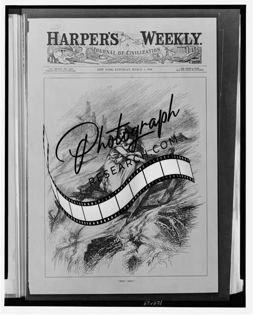 Help! Help!,Flood,Woman,Children,adrift on raging river,1884,Thomas Nast