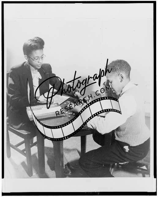 African American Woman,playing word game with Child,Northside Center,1946-1960