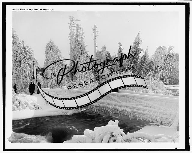 Luna Island,pedestrian bridges,snow,winter,trees,Niagara Falls,New York,NY,1910