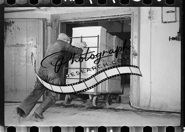 Packing eggs in cold storage warehouse,Jersey City,New Jersey,NJ,April 1939,2