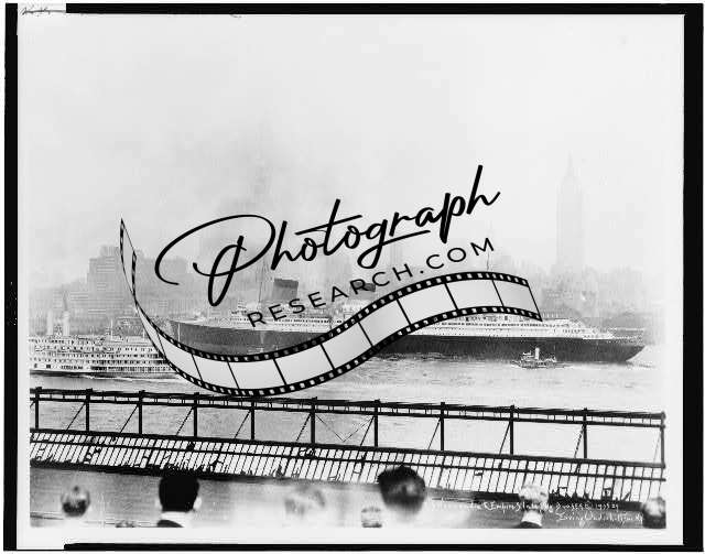 S.S. Normandie & Empire State Building,New York,NY,Ocean Liner,Boat,c1935