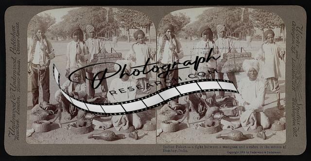 Indian Fakirs - a fight between a mongoos,a cobra in the streets of Bombay,India
