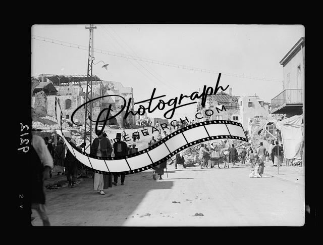 Title: Palestine disturbances 1936. The first goods to enter Jaffa Custom House from the sea for six months