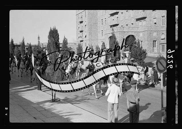 Title: Palestine disturbances 1936. Military Band leaving the Jerusalem War Cemetry [i.e., Cemetery] on Armistice Day [Mount Scopus]