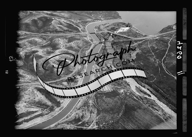 Title: Air views of Palestine. Palestine Electric Corporation Establishment (P.E.C.) The Rutenberg Hydro-Electric Works at Jisr Majamieh. Glimpse of the Yarmuk river near el-Hammeh, hot springs, above point of junction with Jordan