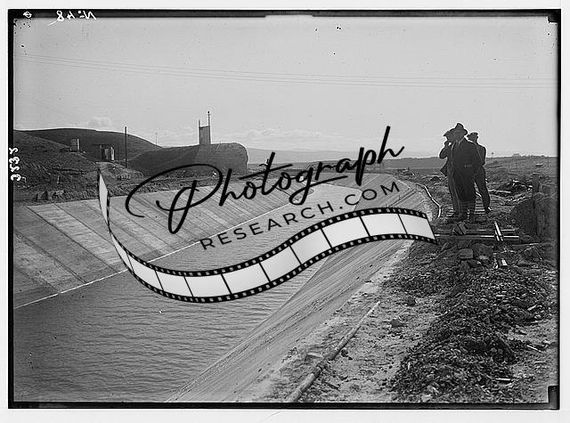 Title: The Palestine Electric Corporation power plant. The P.E.C. sluice gates controlling water in the Jordan Canal.