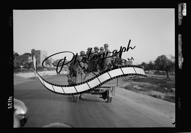 Title: Palestine events. The 1929 riots, August 23 to 31. British armoured cars 'standing to' during the outbreak. At the Russian buildings