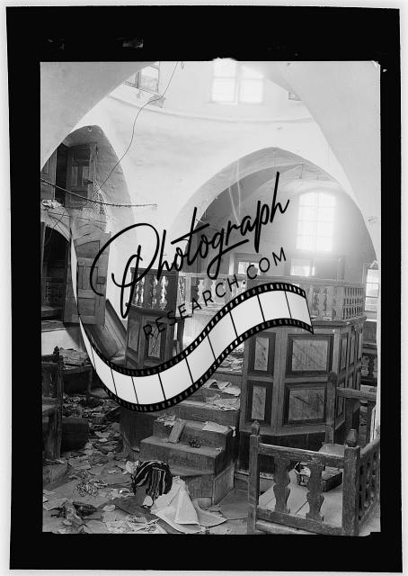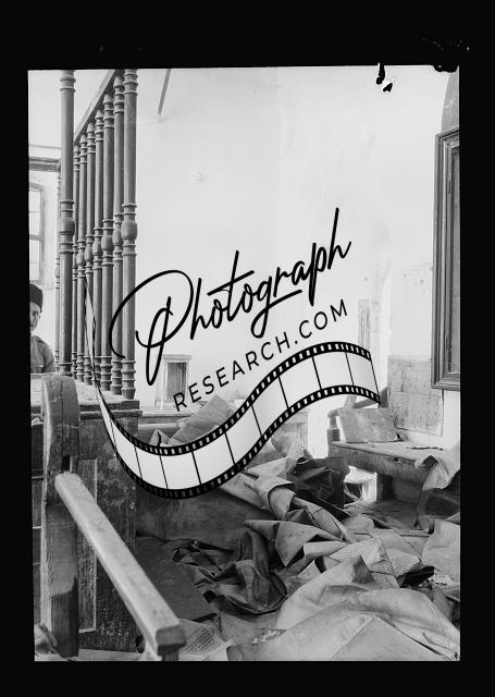 Title: Palestine events. The 1929 riots, August 23 to 31. Synagogue desecrated by Arab rioters. Sacred books torn and scattered on the floor