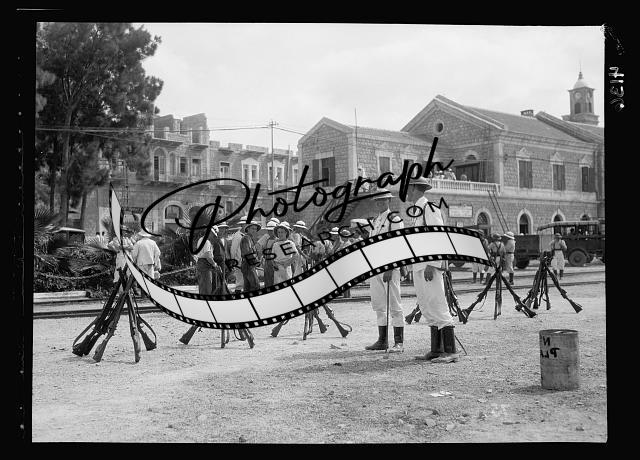 Title: Palestine events. The 1929 riots, August 23 to 31. Display of military force in Jerusalem. Troops in full kit marching through the streets