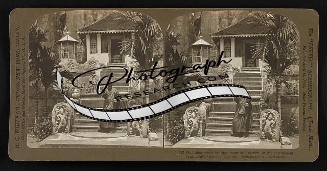 Buddhist preist bearing image and screen, at the entrance of Isuruminiya temple,