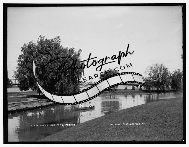 Belle Isle Park,canoes,boats,bridges,water bodies,trees,Detroit,Michigan,MI,1880