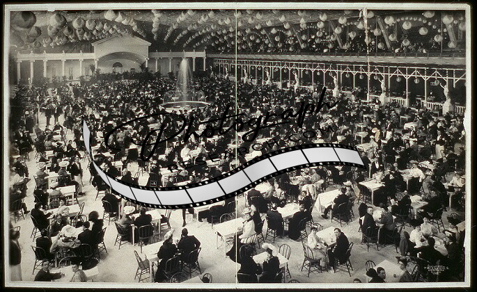 Large Banquest Hall,People at tables,Fountain in Center,c1905,George Lawrence